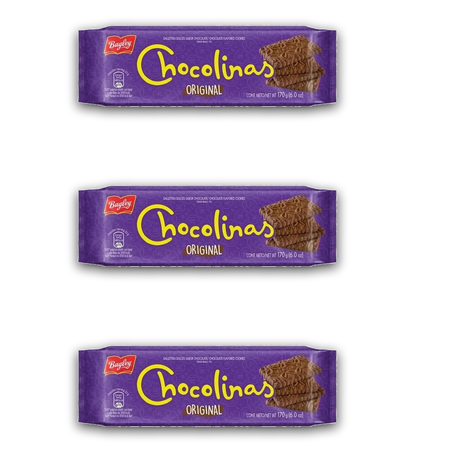 Chocolinas Chocolate Cookies Pack x3 (170g / 6.0 oz Each)
