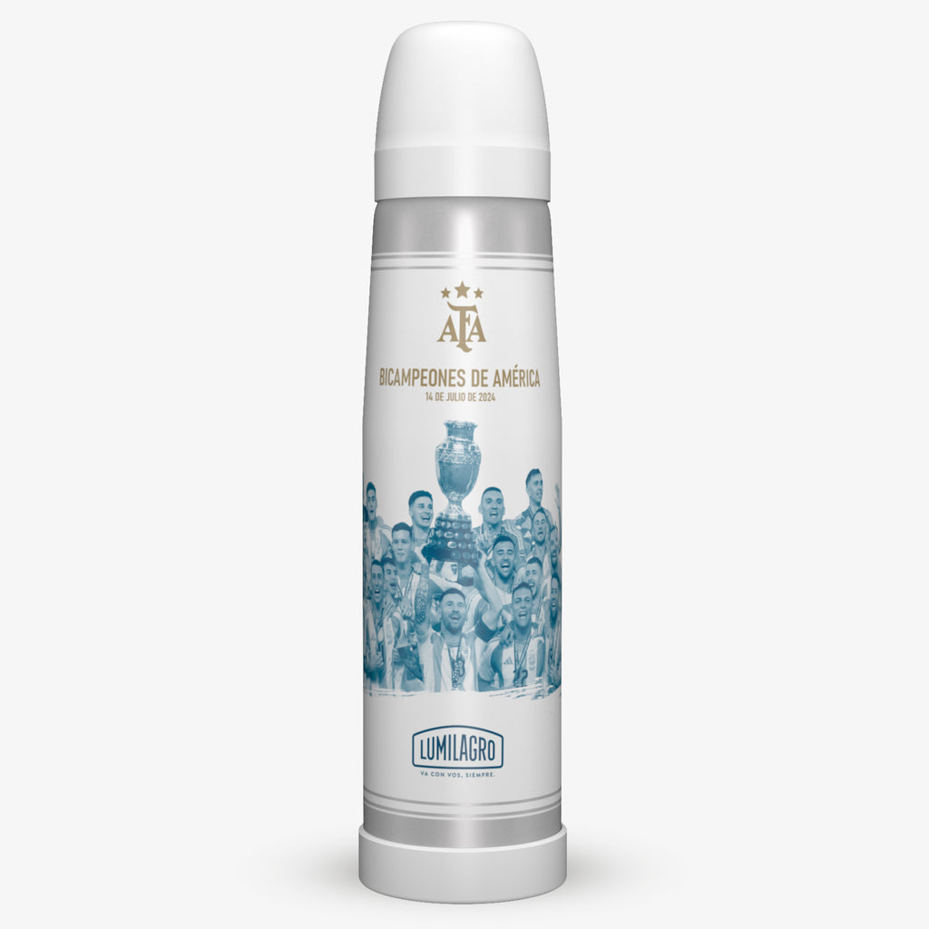 Celebrate the glory of La Scaloneta with this special edition thermos, released in honor of Argentina's latest victory at the Copa América 2024.